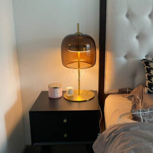 chụp màu thuỷ tinh xám khói – thân đèn vàng champagne